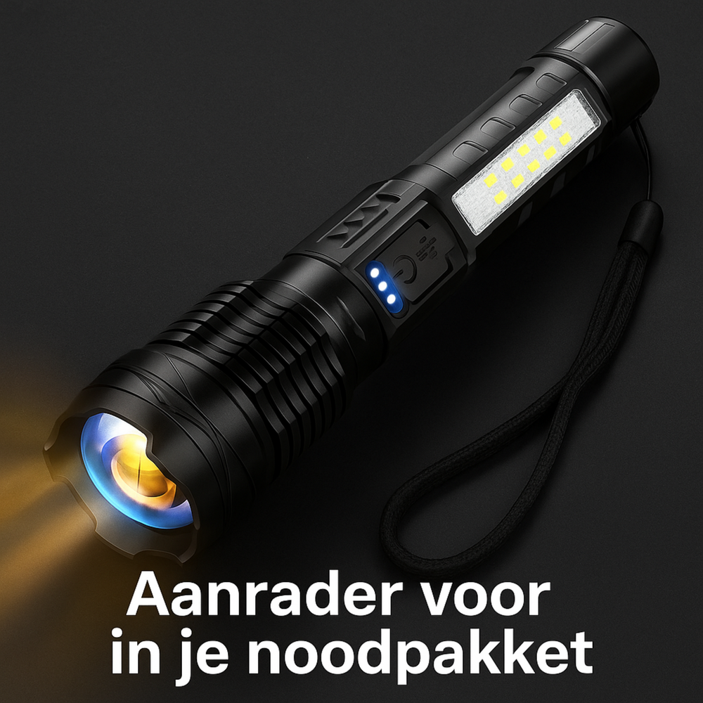 De UltraBright Pro Survival Light voor NOOD™ is ontwikkeld voor momenten waarop je geen risico kunt nemen. Met extreem heldere verlichting, een robuust ontwerp en meerdere noodfuncties geeft deze tool je direct controle tijdens stroomstoringen, pech onderweg, noodgevallen thuis of buiten.
